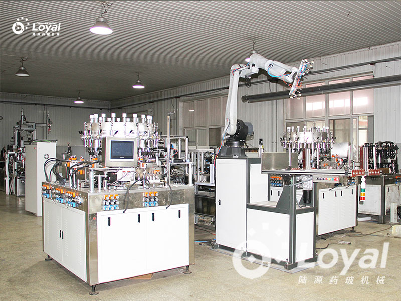 西林瓶生產(chǎn)線包括:自動(dòng)上管、自動(dòng)成型、經(jīng)機(jī)械手轉(zhuǎn)換至前端檢測(cè)線(也叫生產(chǎn)管控)、檢測(cè)線檢測(cè)的項(xiàng)目:1、瓶口內(nèi)外徑 2、瓶身長(zhǎng)短 3、瓶身外徑 4、瓶口邊厚 5、瓶底內(nèi)凹尺寸檢測(cè);經(jīng)檢測(cè)后的合格品再用機(jī)械手夾盤轉(zhuǎn)換至退火爐網(wǎng)帶上,經(jīng)高溫減除應(yīng)力后再降溫,通過氣動(dòng)吸盤將回火后的小瓶轉(zhuǎn)換至后端檢測(cè)線,后端檢測(cè)(也是重檢也叫終檢),經(jīng)后端拍照檢測(cè)項(xiàng)目
